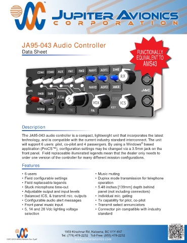 The JA95-043 audio controller is a compact, lightweight unit that incorporates the latest
