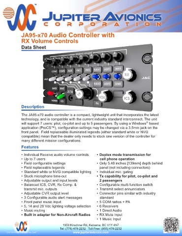 The JA95-x70 audio controller is a compact, lightweight unit that incorporates the latest