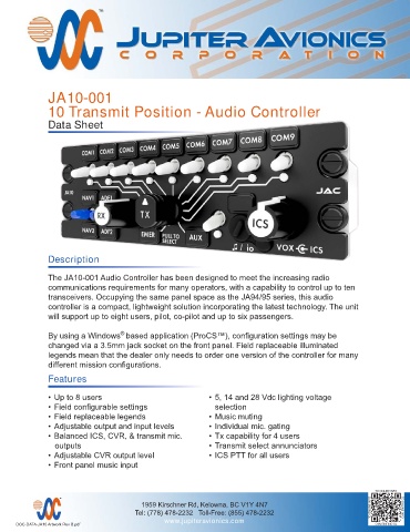 The JA10-001 Audio Controller has been designed to meet the increasing radio